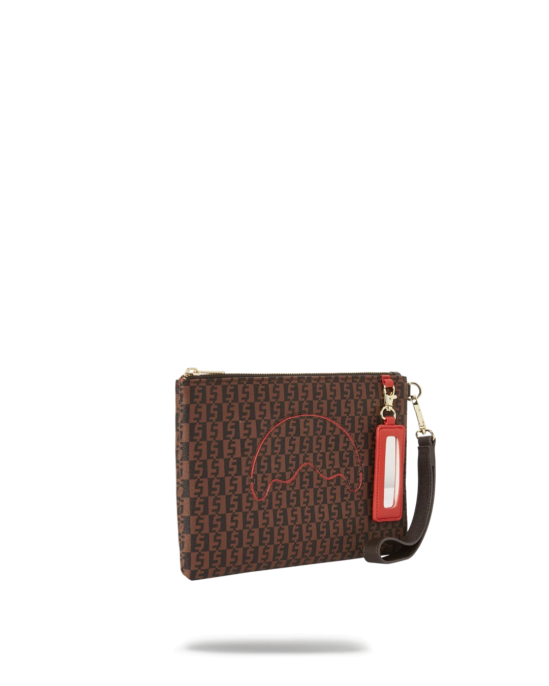 Pouch with removable wristlet strap, Handle on front panel, Zip Closure, secret stash pocket on side seam