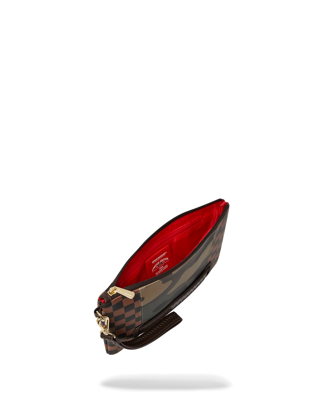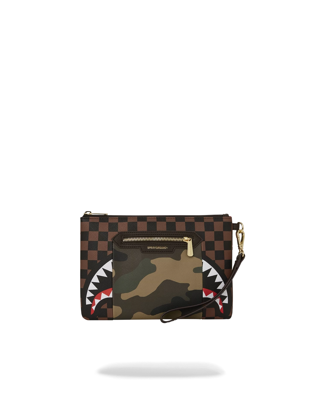 Pouch with removable wristlet strap, Handle on front panel, Zip Closure, secret stash pocket on side seam