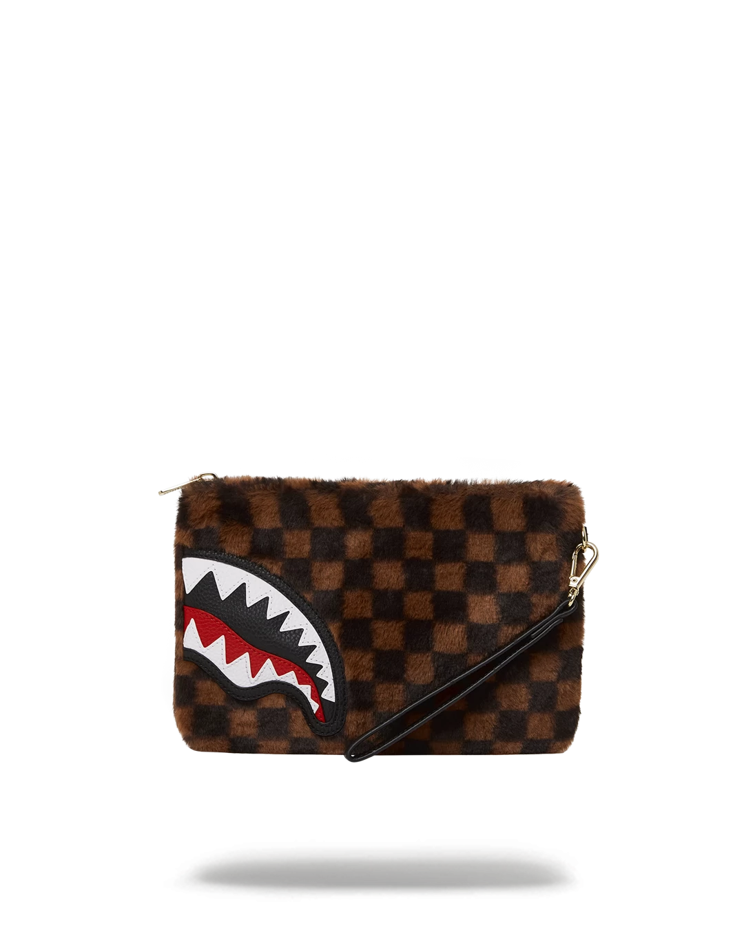 Pouch with removable wristlet strap, Handle on front panel, Zip Closure, secret stash pocket on side seam