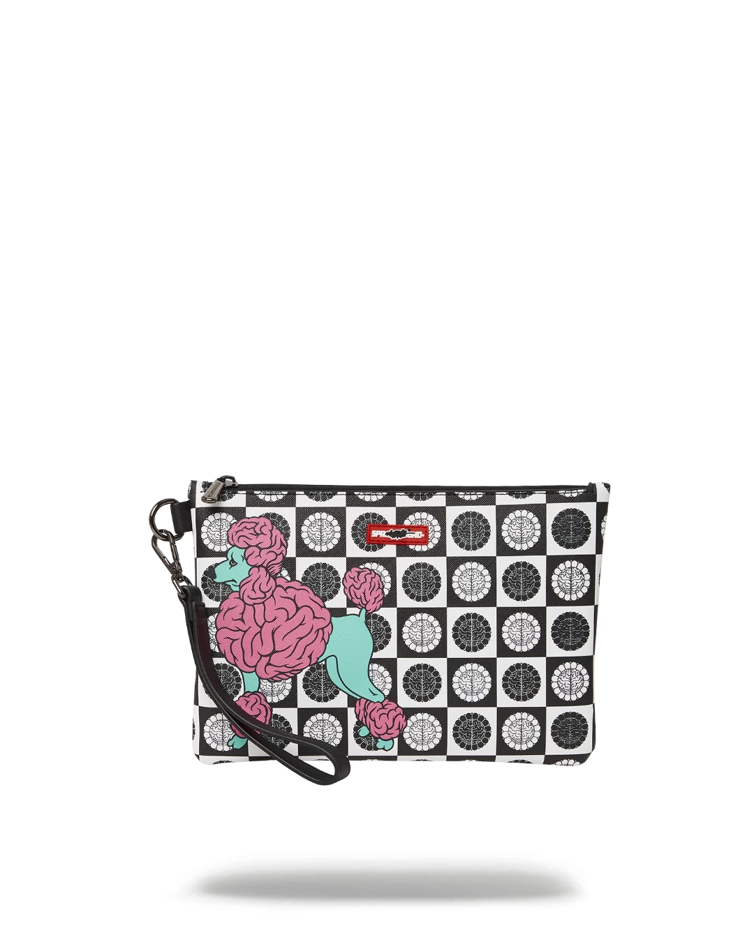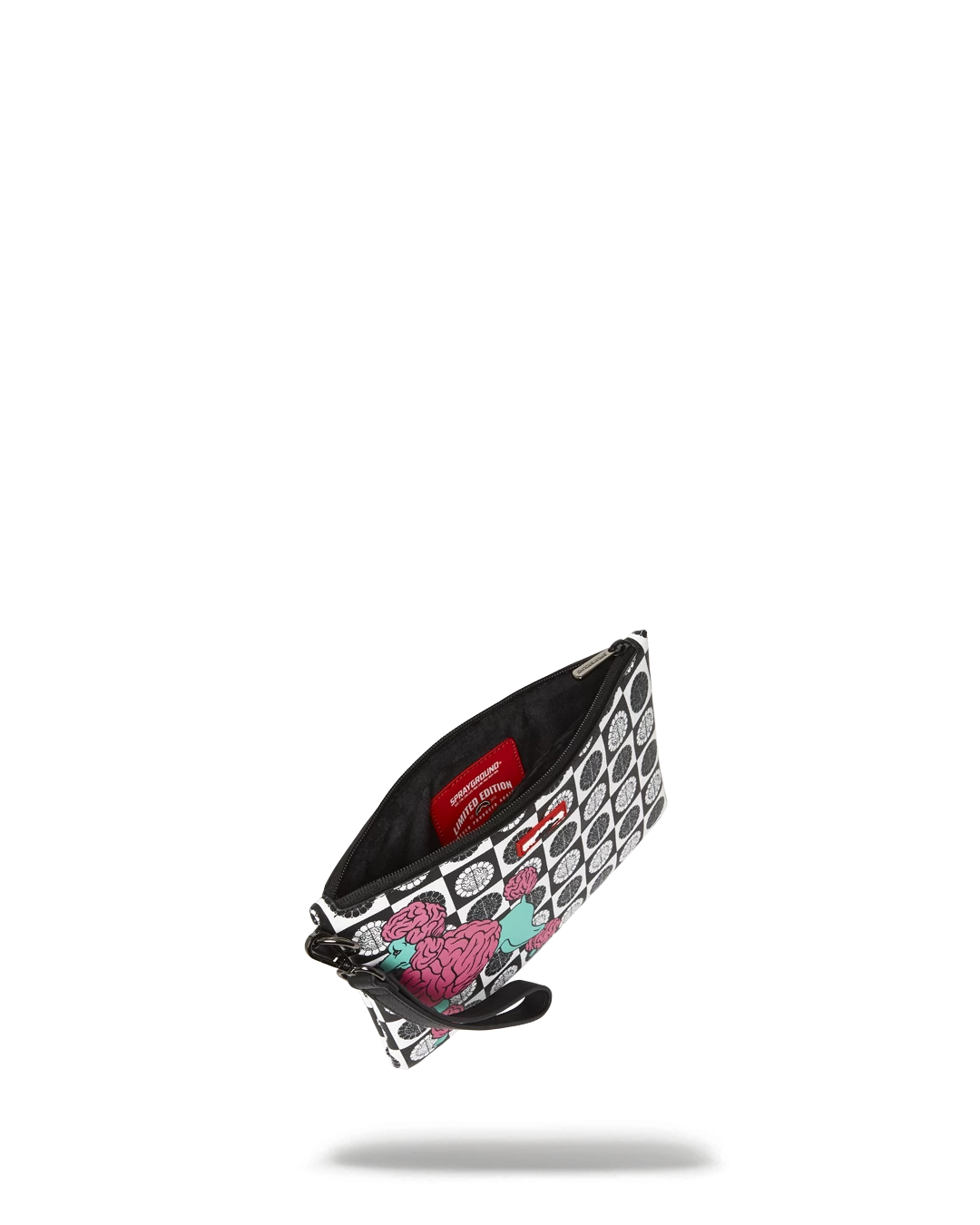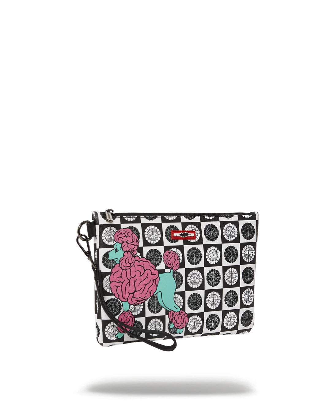 Pouch with removable wristlet strap, Handle on front panel, Zip Closure, secret stash pocket on side seam