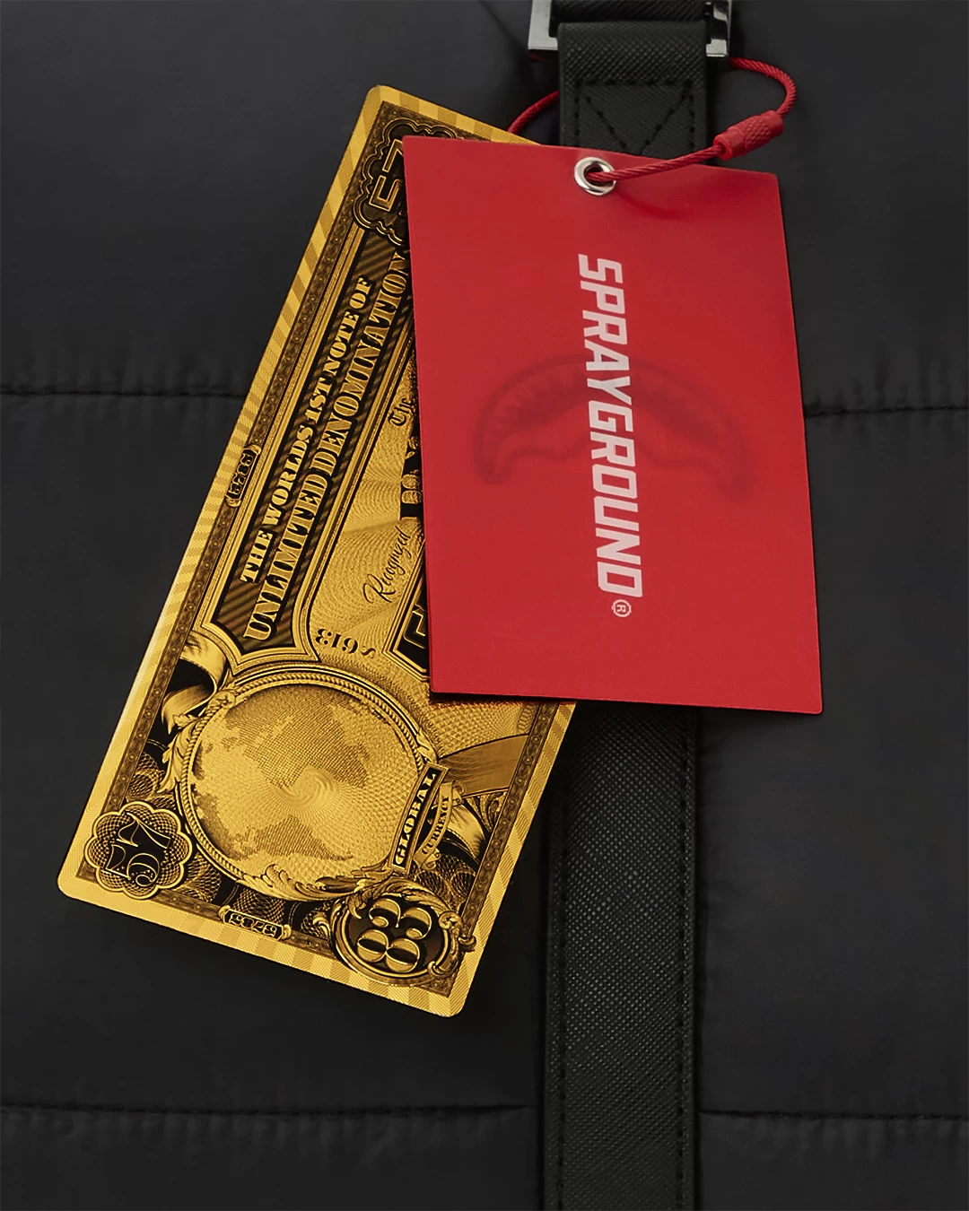 Dimensions: 20″ x 10″ x 10.75″ • Metal zipper pocket• Back Zippers •Zippered sneaker pocket • gold zippers • Adjustable Straps for custom sizing •Metal Zippers with Metal Hardware • bag of Sprayground money