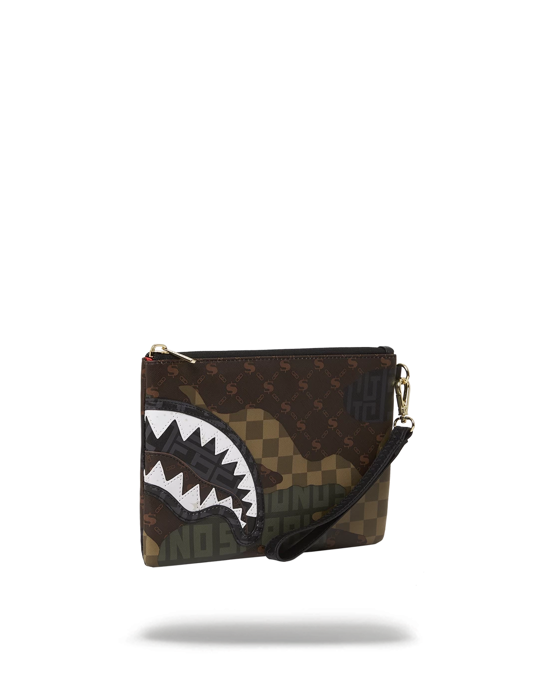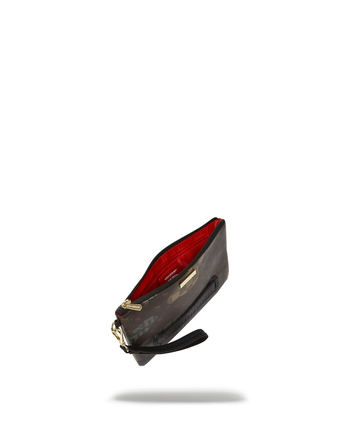 Pouch with removable wristlet strap, Handle on front panel, Zip Closure, secret stash pocket on side seam